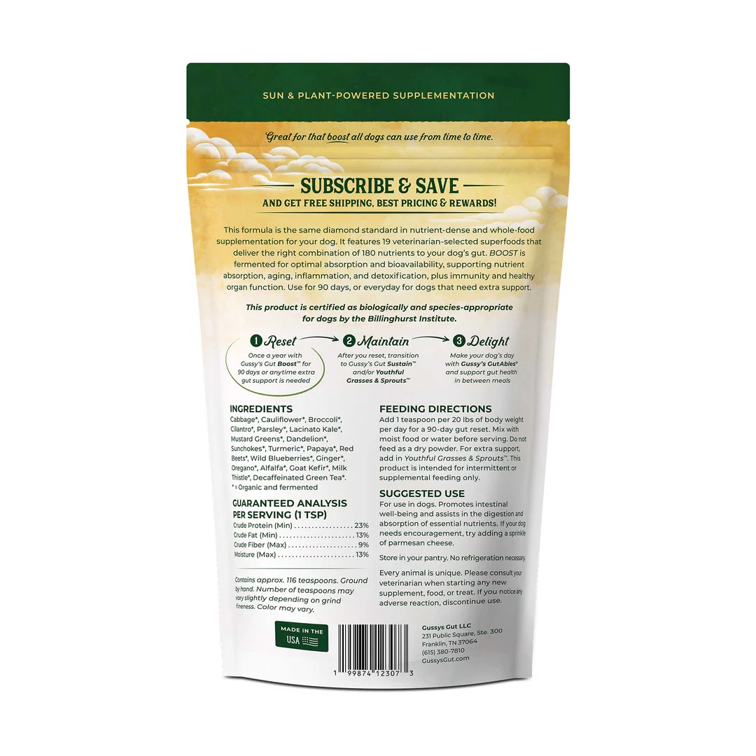 Our signature, 19-ingredient superfood formula to reset and reboot your dog's gut health within 90 days. √ Boost and support your dog's gut lining and diversity √ 124 servings per 7.5oz pack. See product images to see how many packs you should order for your pack √ Subscribe for the best pricing and deal we offer