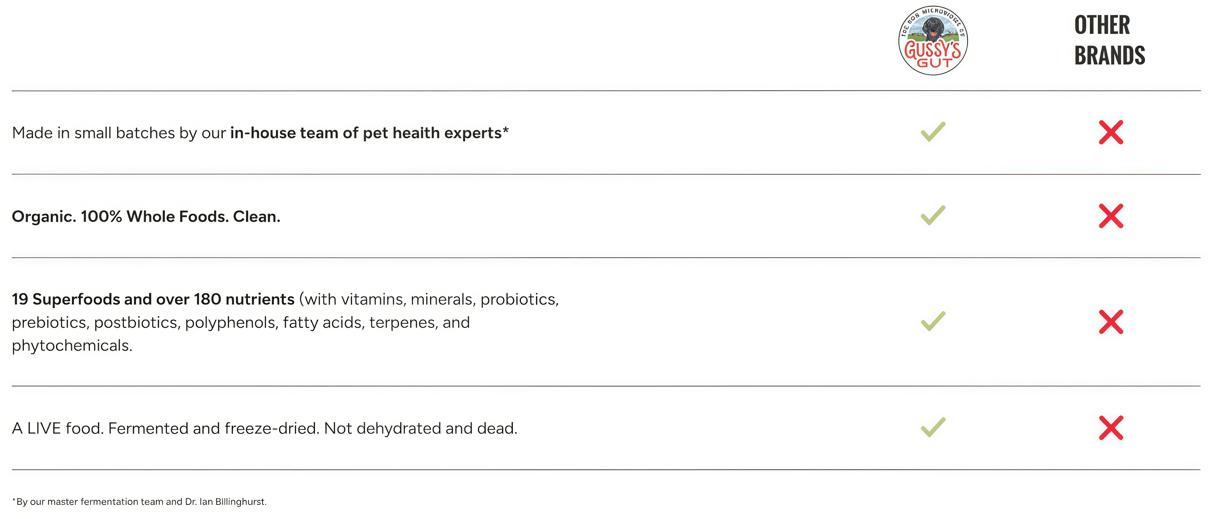 Our nutrient-packed Daily Boost™ is made in small batches by hand, fermented for two weeks, and freeze-dried. Everything is overseen by the world-renowned original veterinary nutritionist, Dr. Ian Billinghurst. Yep, the one and only.